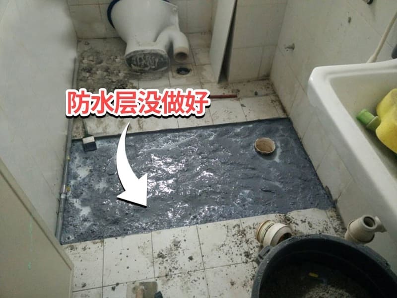 大家必须知道,单单石灰是不防水的,建筑商必须在厕所还没有黏瓷砖时,涂上防水层